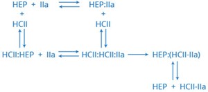 - שיטה נוספת למדידת פעילות HCII בפלזמה פורסמה על ידי Vinazzer וחב' ב-Thromb Res משנת 1987. עקרון השיטה מבוסס על אינאקטיבציה של antithrombin III בפלזמה על ידי הוספה של פרקציית IgG מנסיוב עז שחוסנה כנגד antithrombin III אנושי. אינאקטיבציה מלאה של antithrombin III בפלזמה מטופלת עם הפארין לה הוסף IgG האמור, ניתנת להדגמה על ידי חסר של Xa-effect. תרומבין עוכב רק באופן חלקי לאחר אינאקטיבציה של antithrombin III. המאפיינים של עיכוב זה מיוחסים לפעילות של HCII. בשיטת הבדיקה של Vinazzer וחב', שניתן ליישמה בשגרה הקלינית, נמצא שרמה נמוכה של CHII מופיעה בשחמת הכבד (צירוזיס) כמו גם ב-DIC, אך לא בחסר של antithrombin III. כן מצאו חוקרים אלה שב-15 תוך 269 מקרים של DVT נשנית, פעילות HCII הייתה מתחת ל-70% מהנורמה, כאשר ב-4 מהמקרים האחרונים פעילות CHII הייתה בין 44-54% מהנורמה. במחלה חסימתית עורקית, פעילות HCII נמצאה נמוכה מ-60% מהנורמה ב-18 מתוך 583 מטופלים